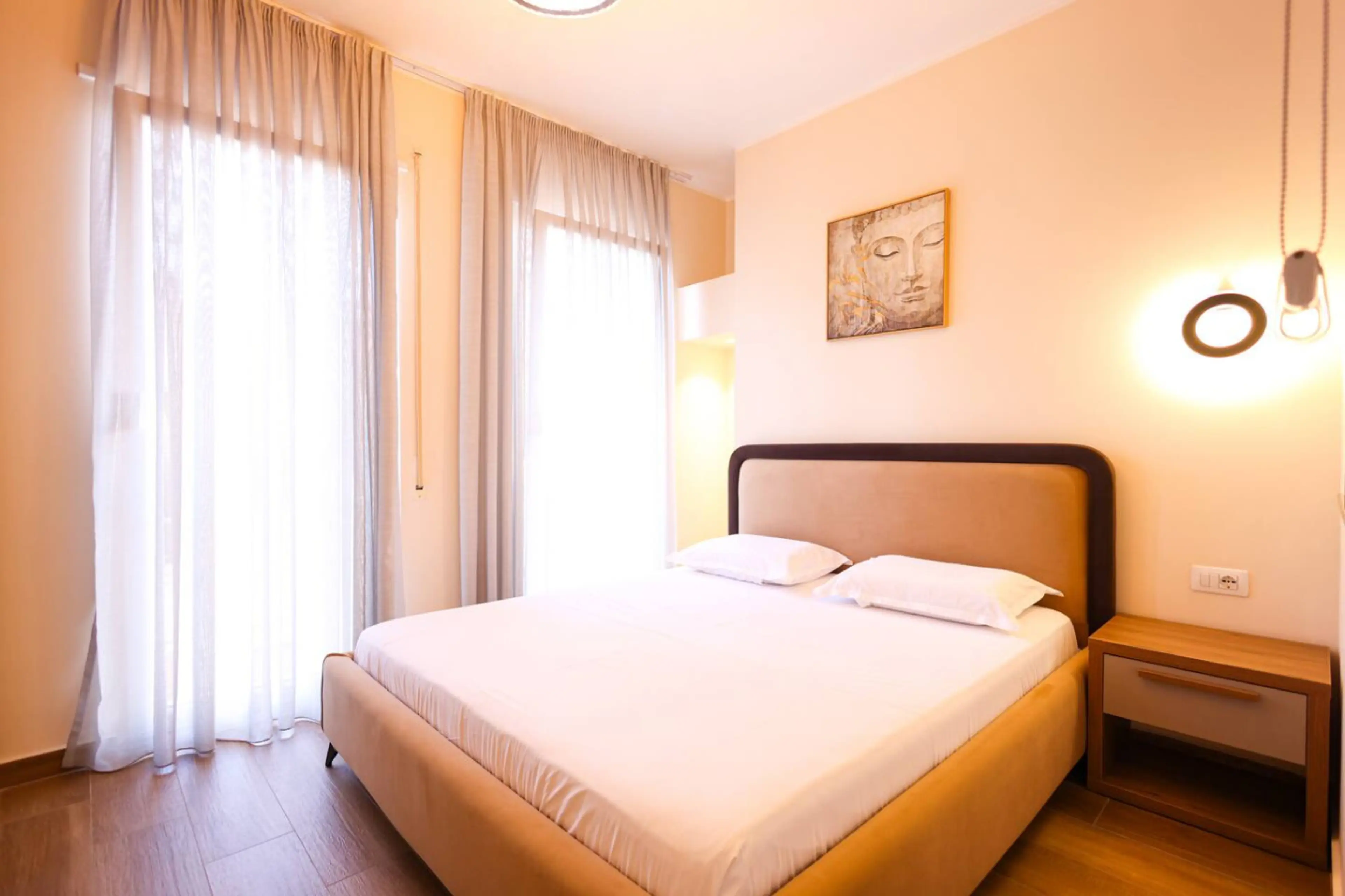 Modern and well-appointed 1+1 apartment in the center of Durres, combining comfort with smart design. Includes a cozy bedroom with workspace, a stylish living area, a fully equipped kitchen, and a contemporary bathroom. Warm wood finishes, soft lighting, and a functional layout make it an ideal base...