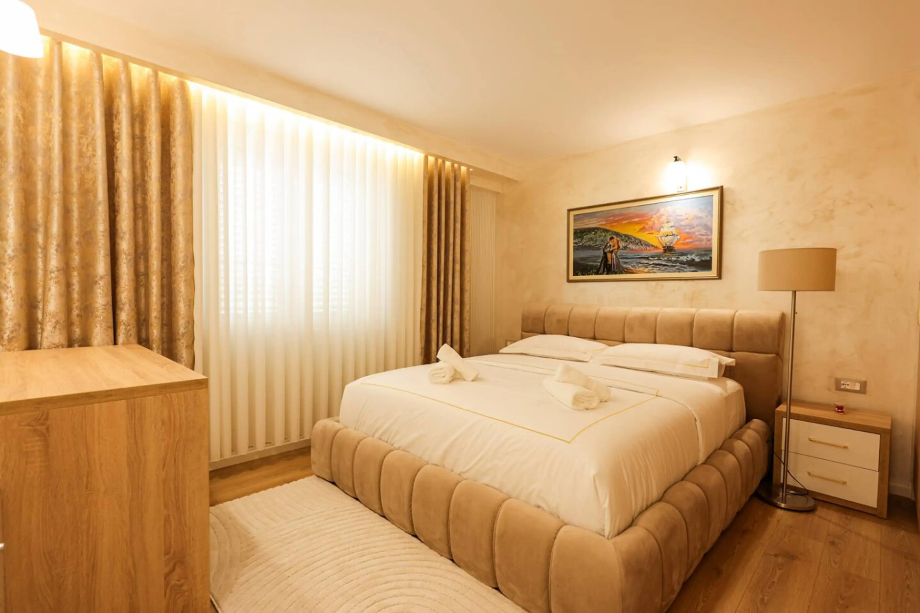 Spacious and comfortable villa located in a quiet area of Durrës, just a short drive from the beach and close to the city center. The villa features two bedrooms, a bright living room, a fully equipped kitchen, dining area, and private bathroom. Guests can enjoy a terrace, balcony with garden views,...