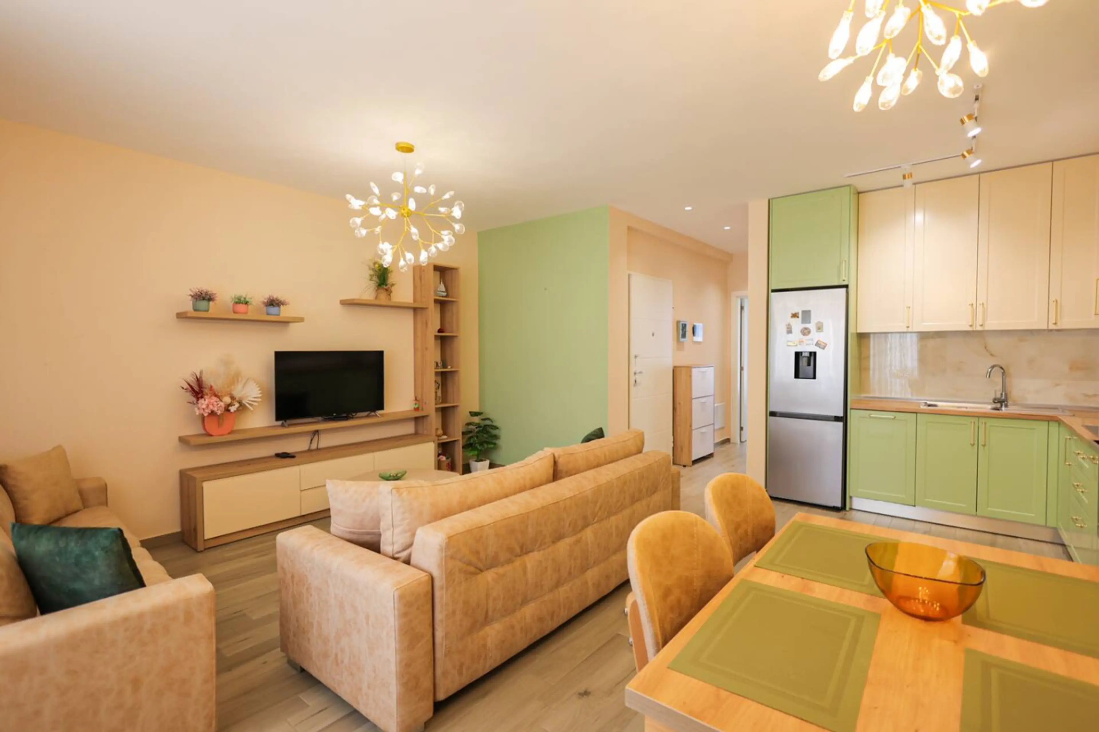 Stylish 1-bedroom apartment in San Pietro Residence, Lalëz Bay. Features a bright living area with open-plan kitchen, a comfortable bedroom, modern bathroom, and a private balcony with outdoor seating. Located in a quiet, secure complex surrounded by greenery, just a short walk from the beach. Ideal...